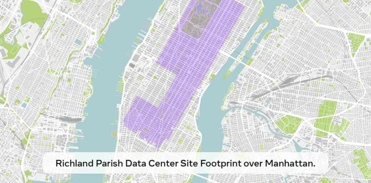 Footprint of proposed Meta data center overlaid on Manhattan, Credit: Zuckerberg